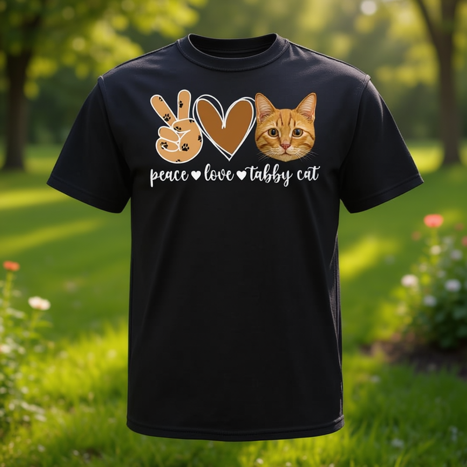 T-shirt Peace Love Orange Tabby Cat pour les amoureux des chats