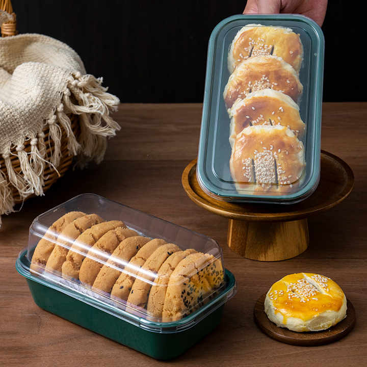 Boîte d'emballage rectangulaire transparente Peach Crisp pour sandwichs, mochi, jaune d'œuf salé, Snow Mei Niang, gâteau de la femme, pâtisserie chinoise