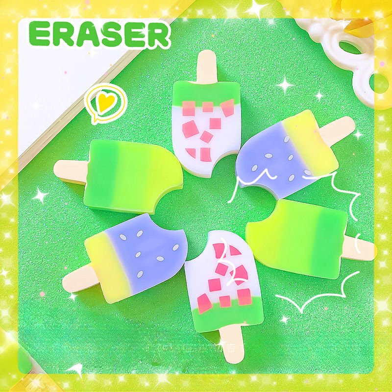 Gomme en forme de crème glacée à la pêche, essuyez, moins de miettes gomme à popsicle dessin animé mignon élèves du primaire papeterie créative