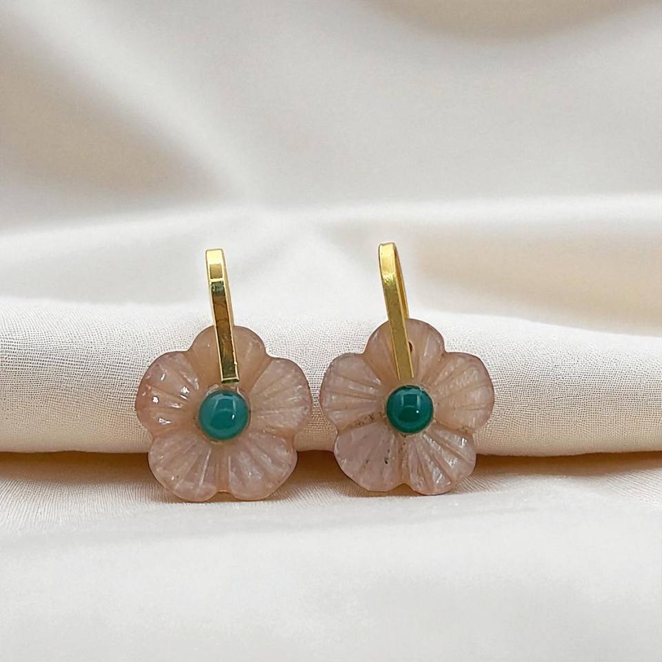 Peach Moonstone Carving Flower Charms 14mm Gemstone Sterling Silver Gold Plated Handmade Flower Charm Wholesale Jewelry Supplies