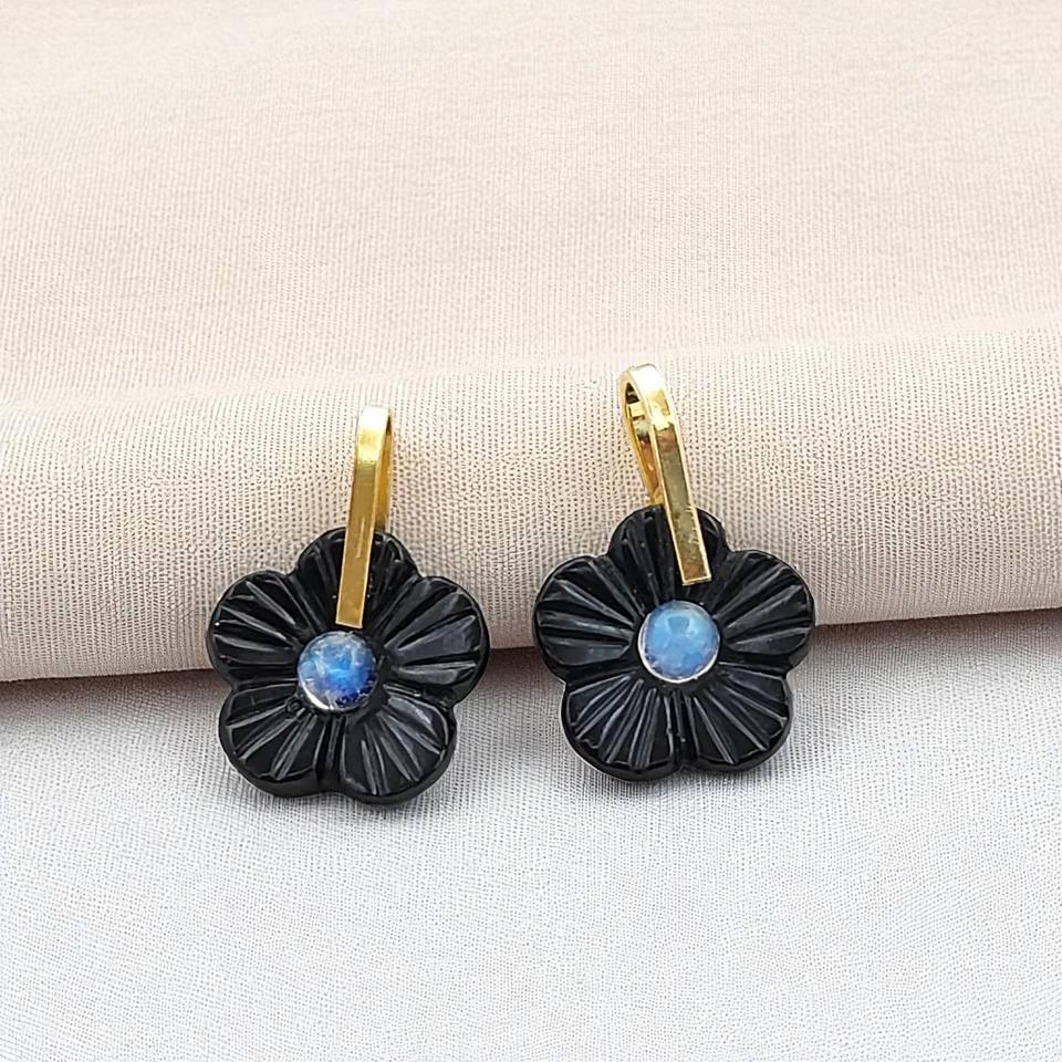 Gemstone:Peach Moonstone, Blue Chalcedony, Black Onyx