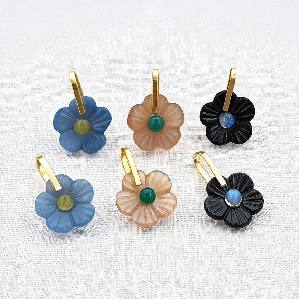 Flower Carving Gemstone Pendant Handmade Charm Jewelry Supplies
