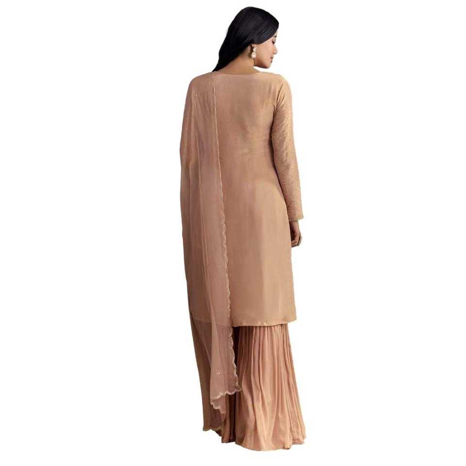Peach Zardosi Moti Kurta Sharara Set with Cutdana Scallop Dupatta Perfect for Bridal Wedding Party Festive Reception Outfit