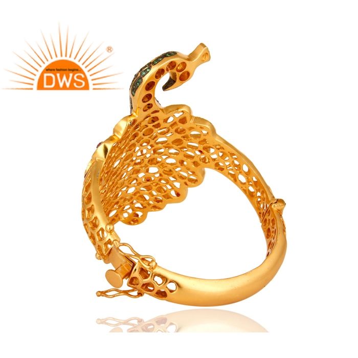 Paon Design Blanc Zircon Pierres Précieuses Ensemble Plaqué Or En Laiton De Mode De Mariée Bracelet Bijoux Grossiste