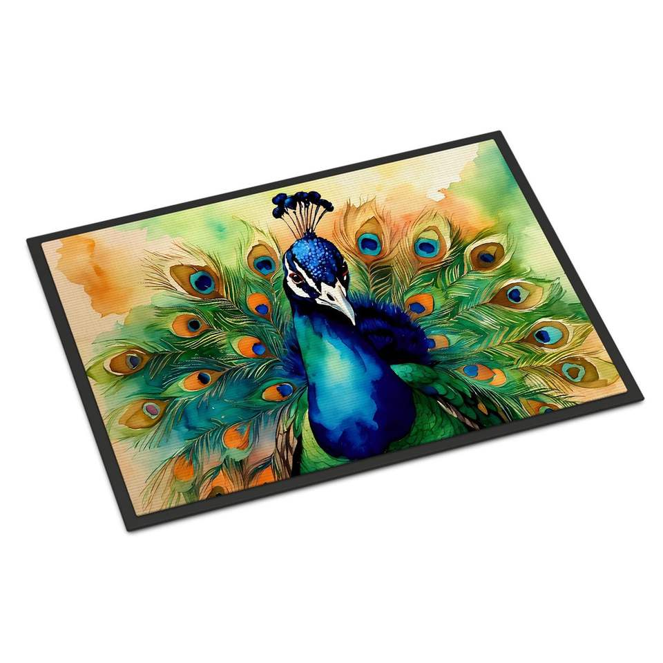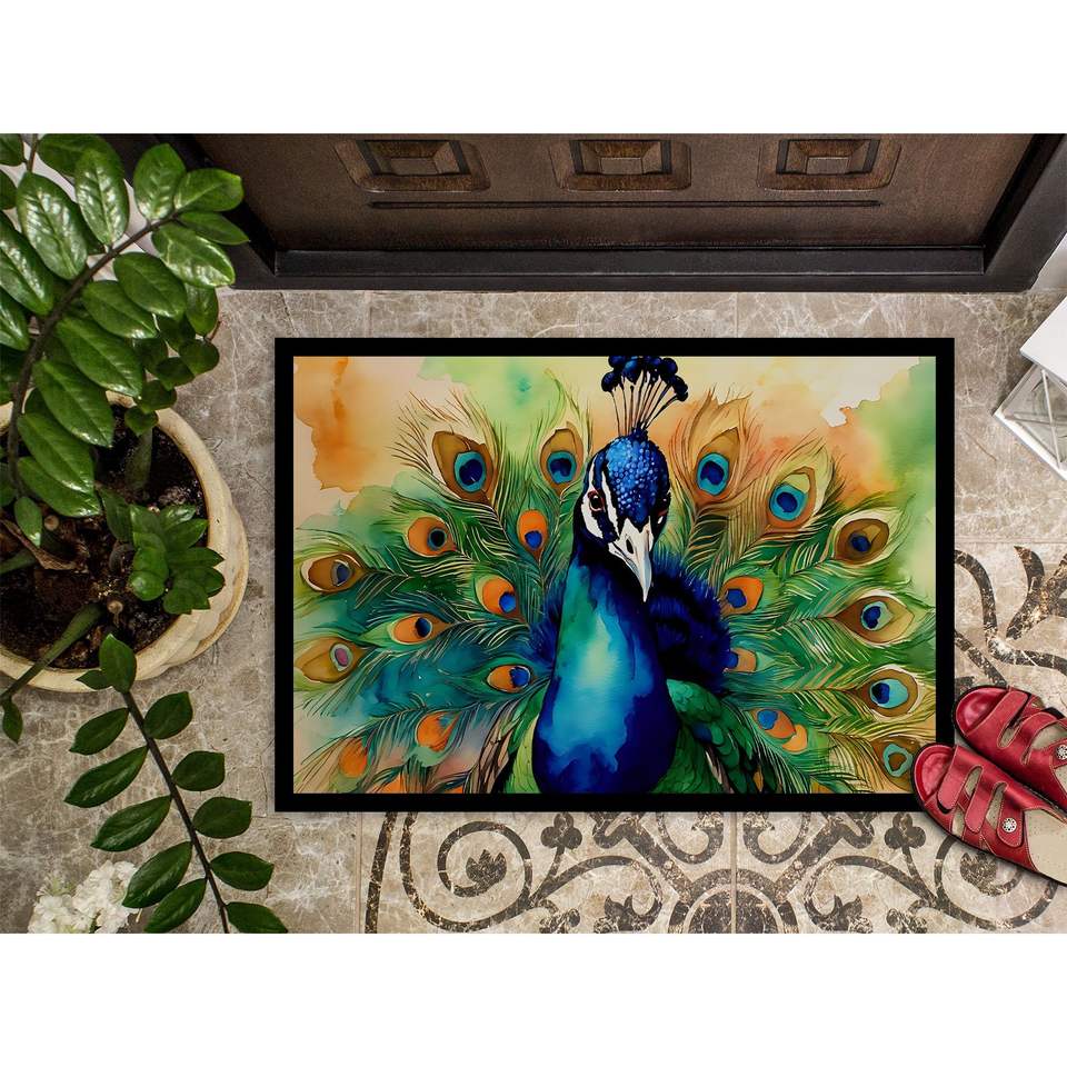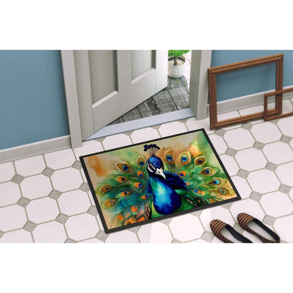 Paillasson Paon Antidérapant Lavable à Poils Courts pour Intérieur/Extérieur, Tapis d'Entrée 24H x 36L pour Porte d'Entrée
