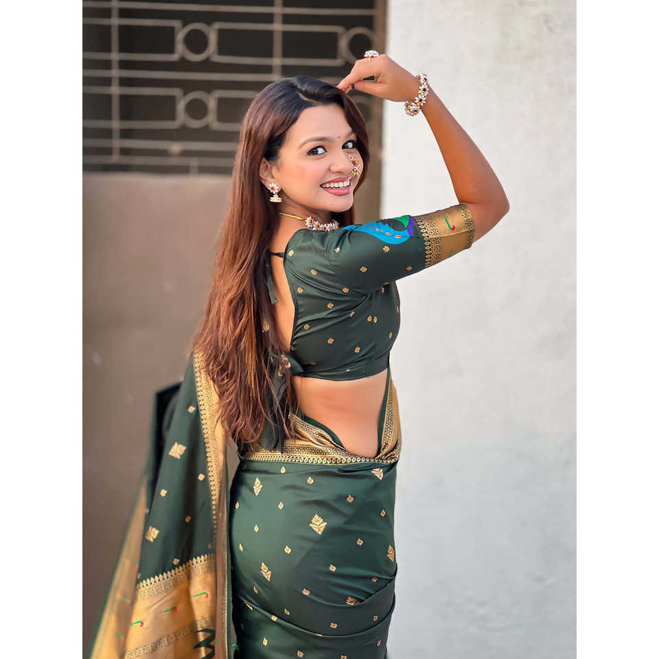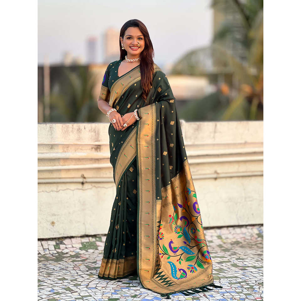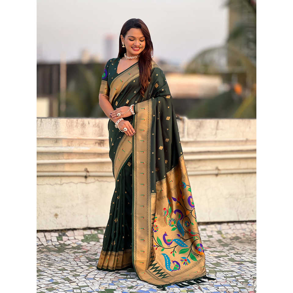 Peacock Paithani Zari Woven Saree in Bottle Green Ethnic Scarf Shawl