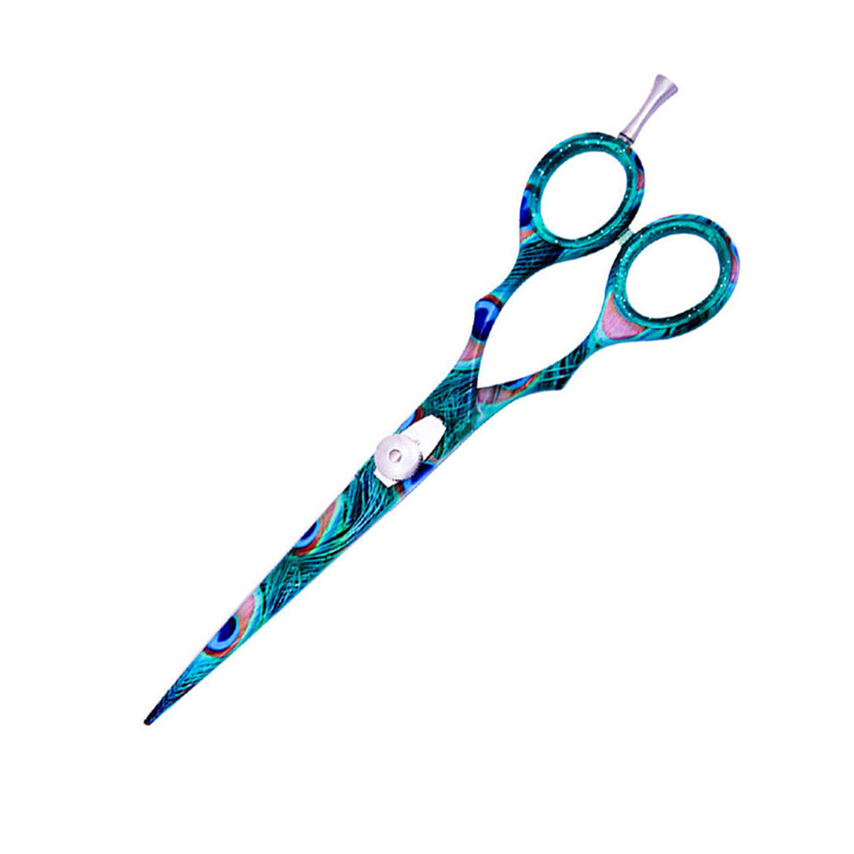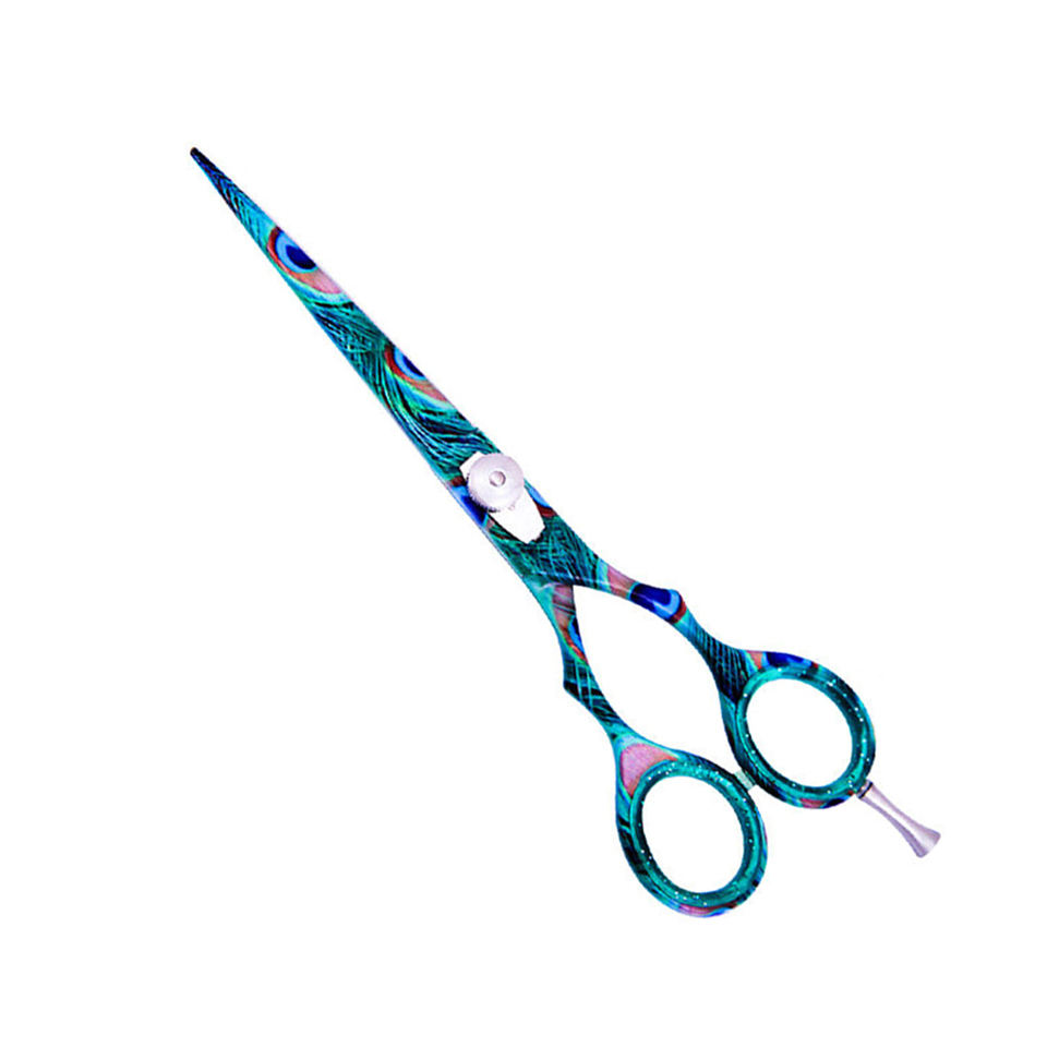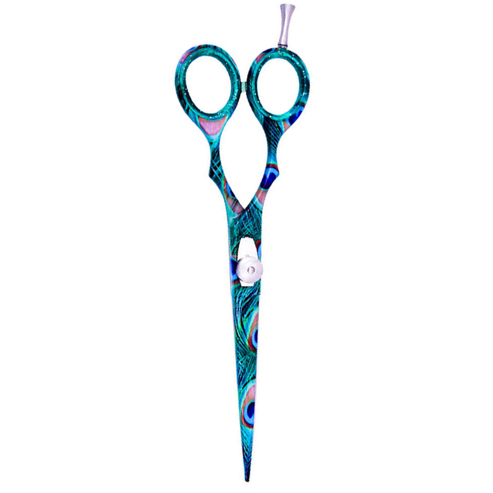 Peacock Paper Coated Design Ciseaux de salon de coiffure Ciseaux de coupe de cheveux de coiffeur en acier inoxydable avec repose-doigt