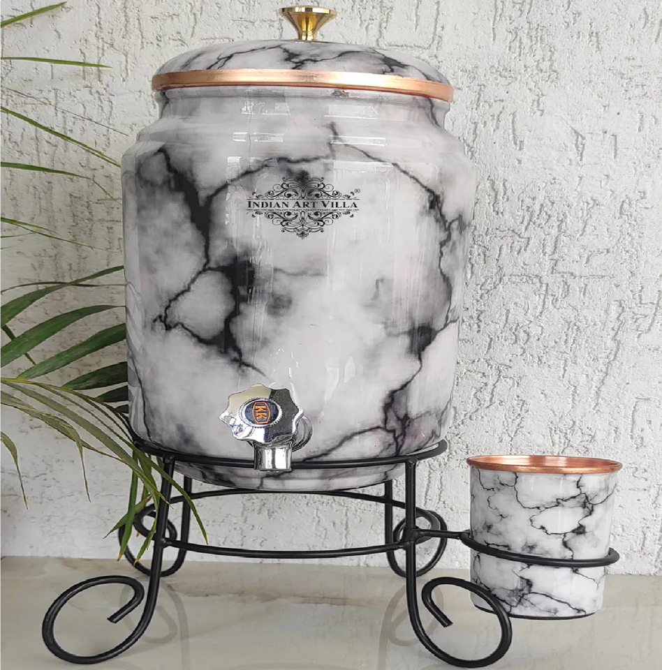 Distributeur d'eau en cuivre pur avec support et verre directement du fabricant indien disponible au prix de gros