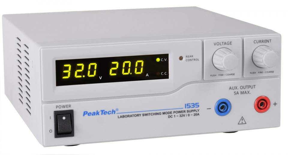 Alimentation électrique de laboratoire PeakTech P 1535, DC 1-32 V/0-20 A, tension et courant réglables avec précision, alimentation électrique DC