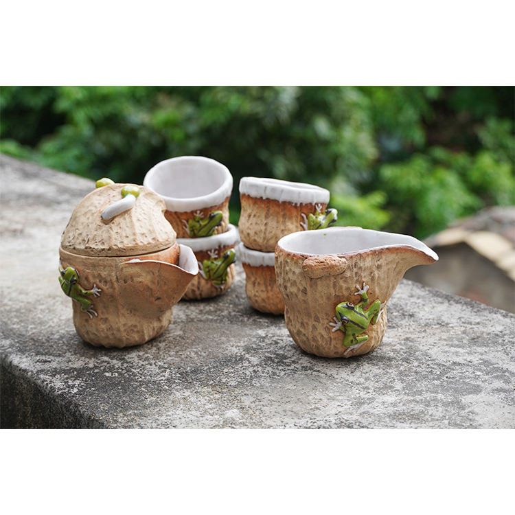 Wholesale Peanut and Frog-shaped Handmade Ceramic Tea Set Environmentally Friendly Durable and Heat-resistant Six-piece Tea Set