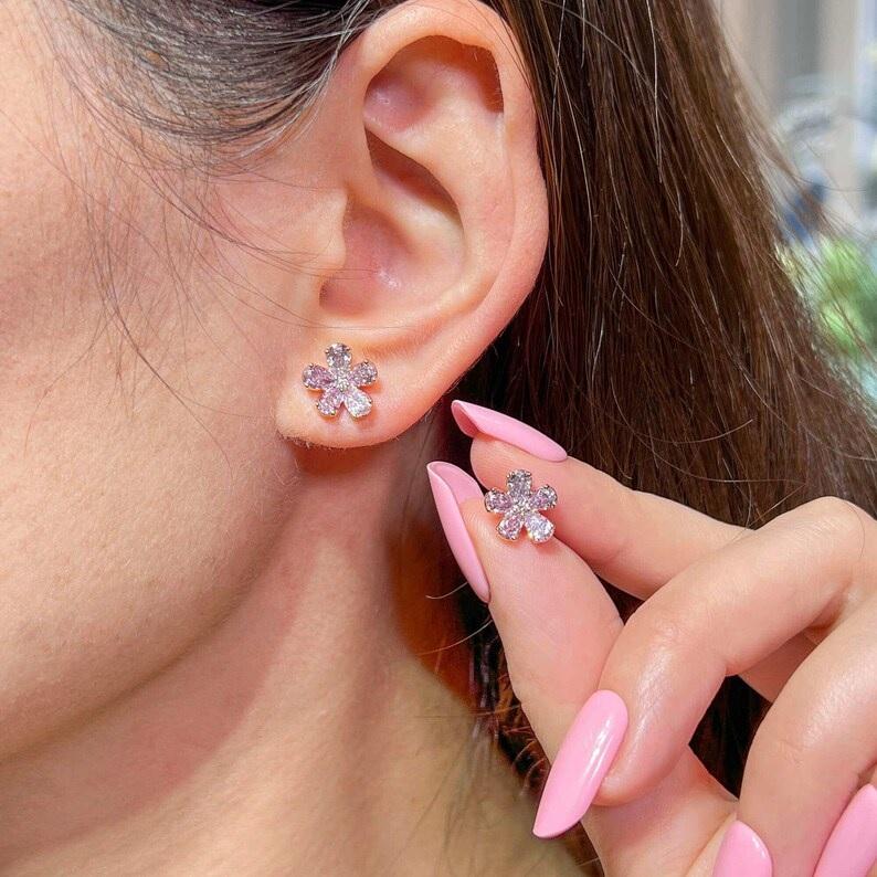 Goujon de diamant cultivé en laboratoire coupe poire pour les femmes diamant rond de couleur rose goujon délicat boucles d'oreilles en diamant Solitaire écologique pour elle
