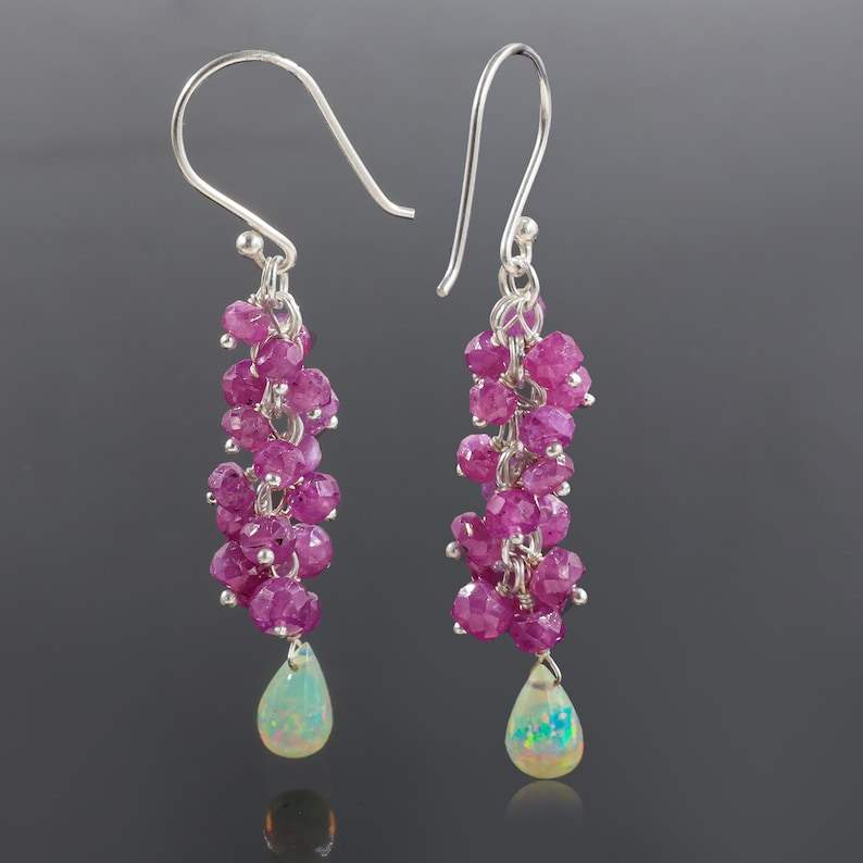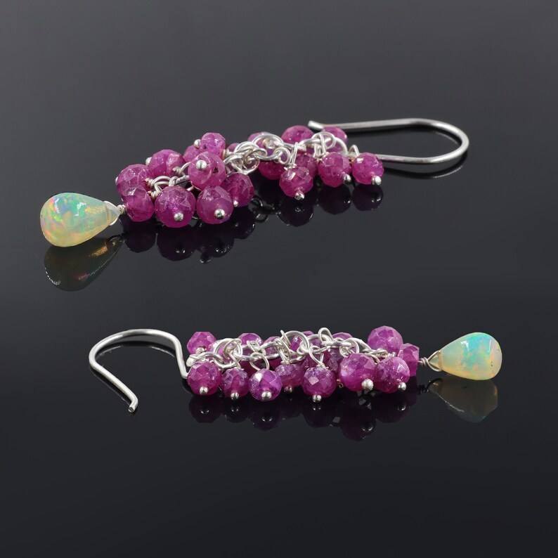 Pear Opal Drop And Ruby Beads Cluster Earrings For Women Fire Opal And Faceted Ruby Minimalist Gift For Her Jewelry Art
