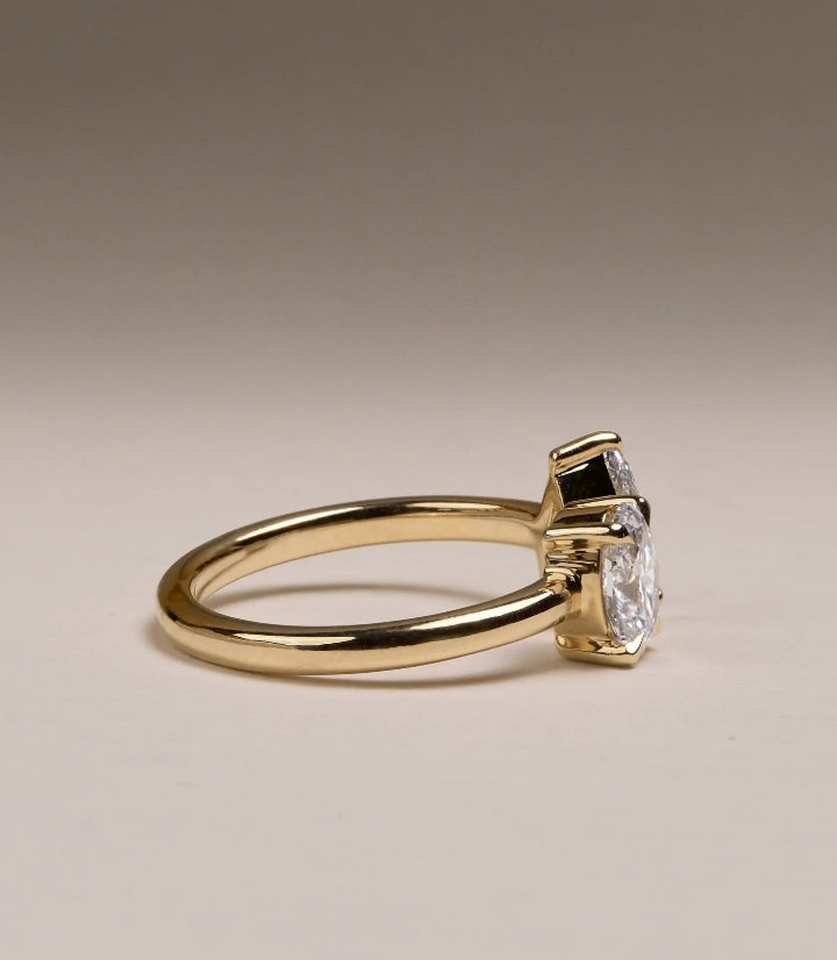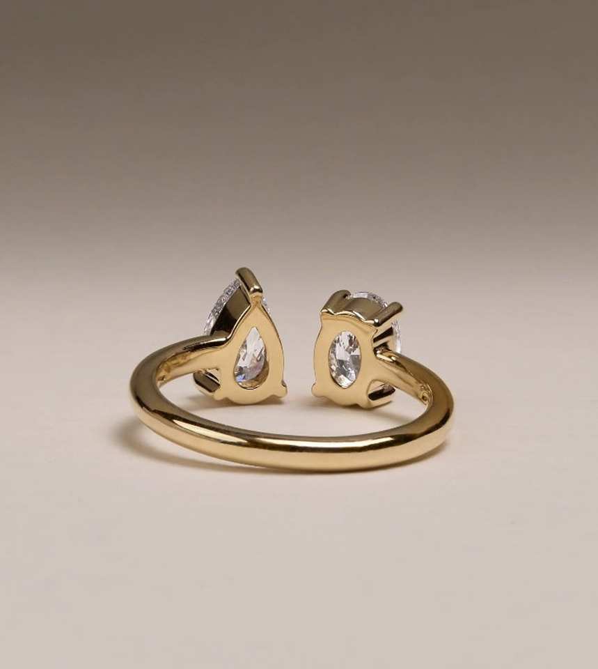 Poire et ovale coupe laboratoire cultivé diamant bague de fiançailles vous et moi bague Toi Et Moi bague de mariage cadeau d'anniversaire 14K or 2 pierres