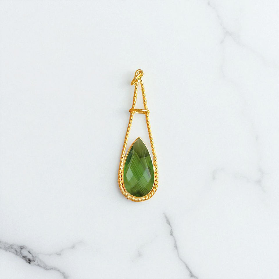 Poire péridot pierres précieuses torsadé lunette pendentif à breloque-gros plaqué or bricolage pendentif à breloques-10x16 MM poire pierre