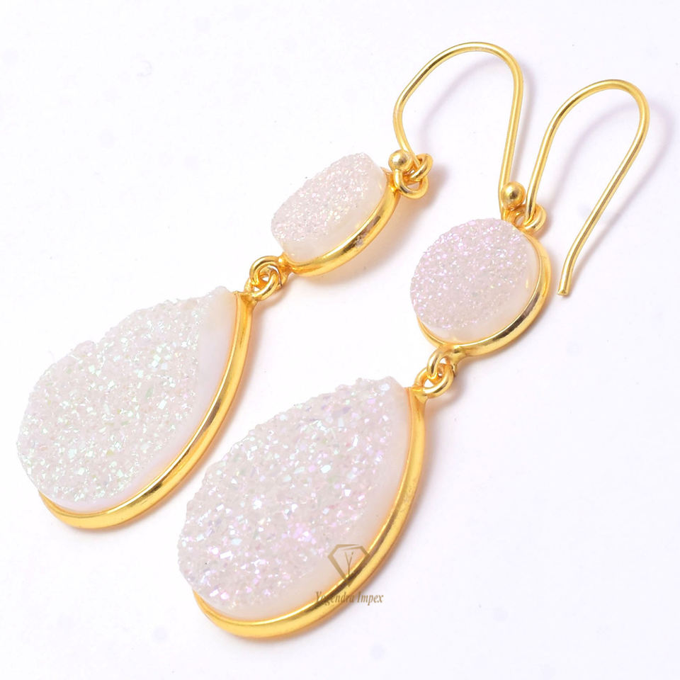 Boucles d'oreilles pendantes en pierre de lune arc-en-ciel, bijou pendant en titane, druse blanche, argent Sterling 925, vente en gros, livraison gratuite