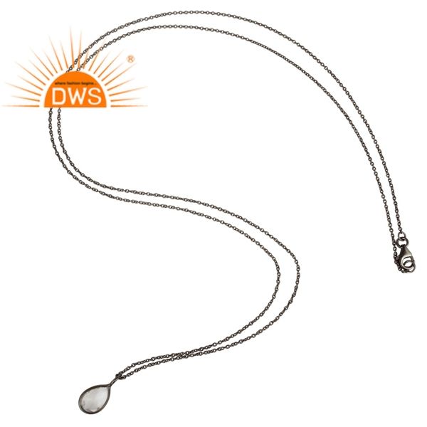 Pendentif en Quartz cristal en forme de perle naturelle, joaillerie de styliste, argent 925 avec chaîne spéciale, couleur noir