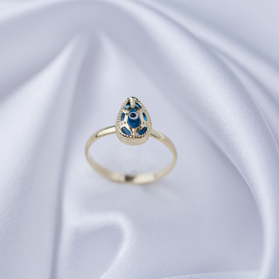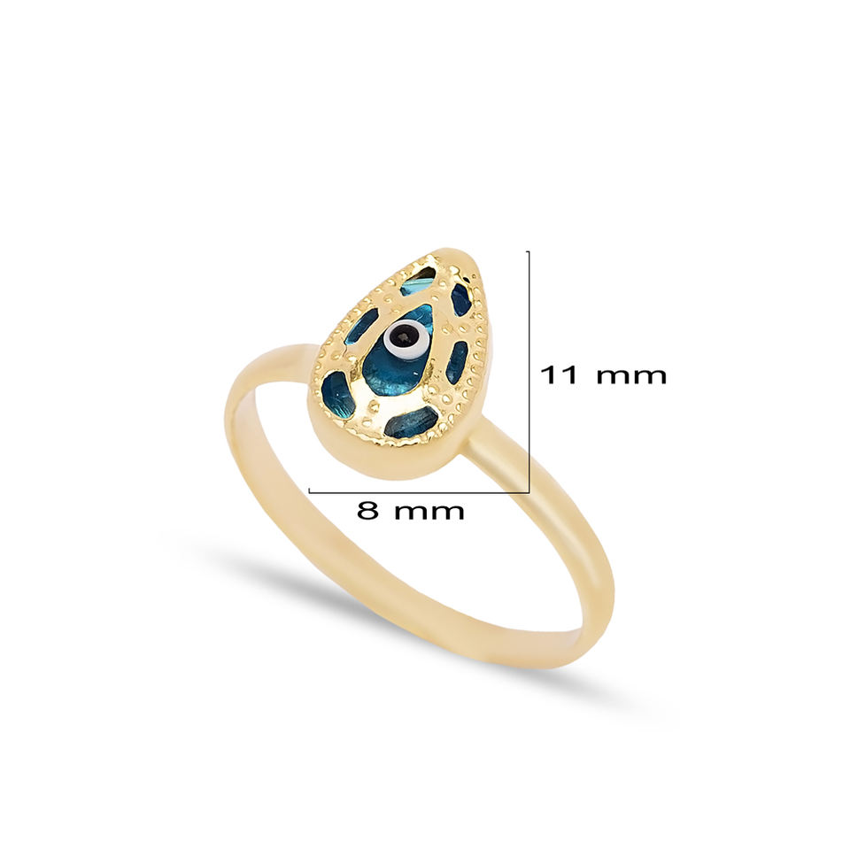 Bague de conception d'oeil turc en forme de poire Turkish Handcrafted Wholesale 925 Sterling Silver Jewelry