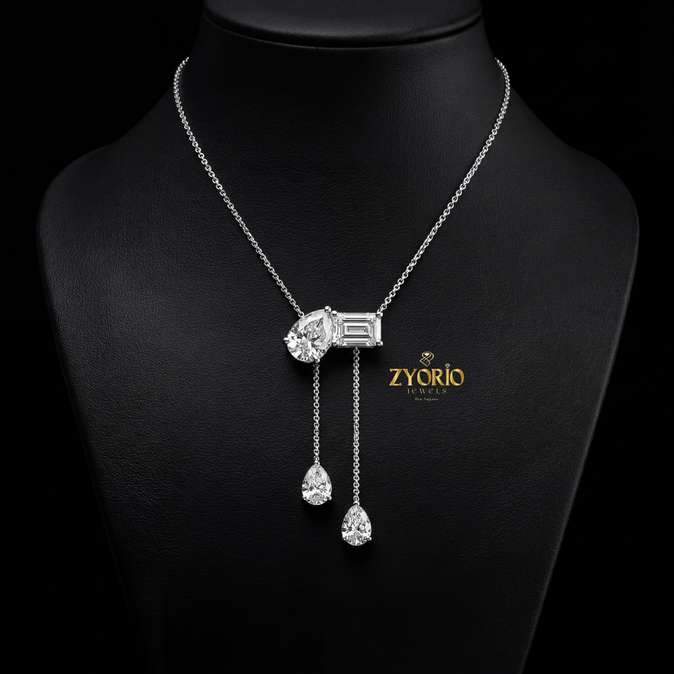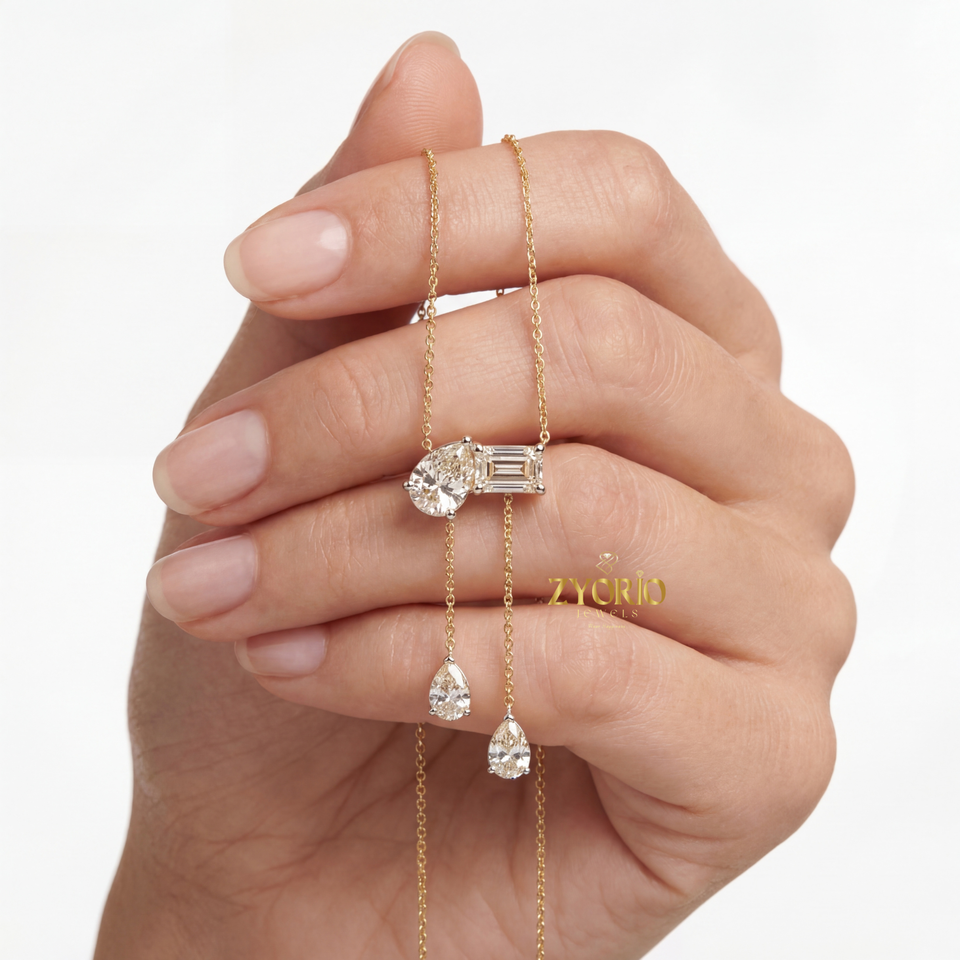Collier pendentif en diamant de laboratoire taille poire et émeraude, en argent sterling 925, collier de créateur Toi et Moi pour femme, luxe