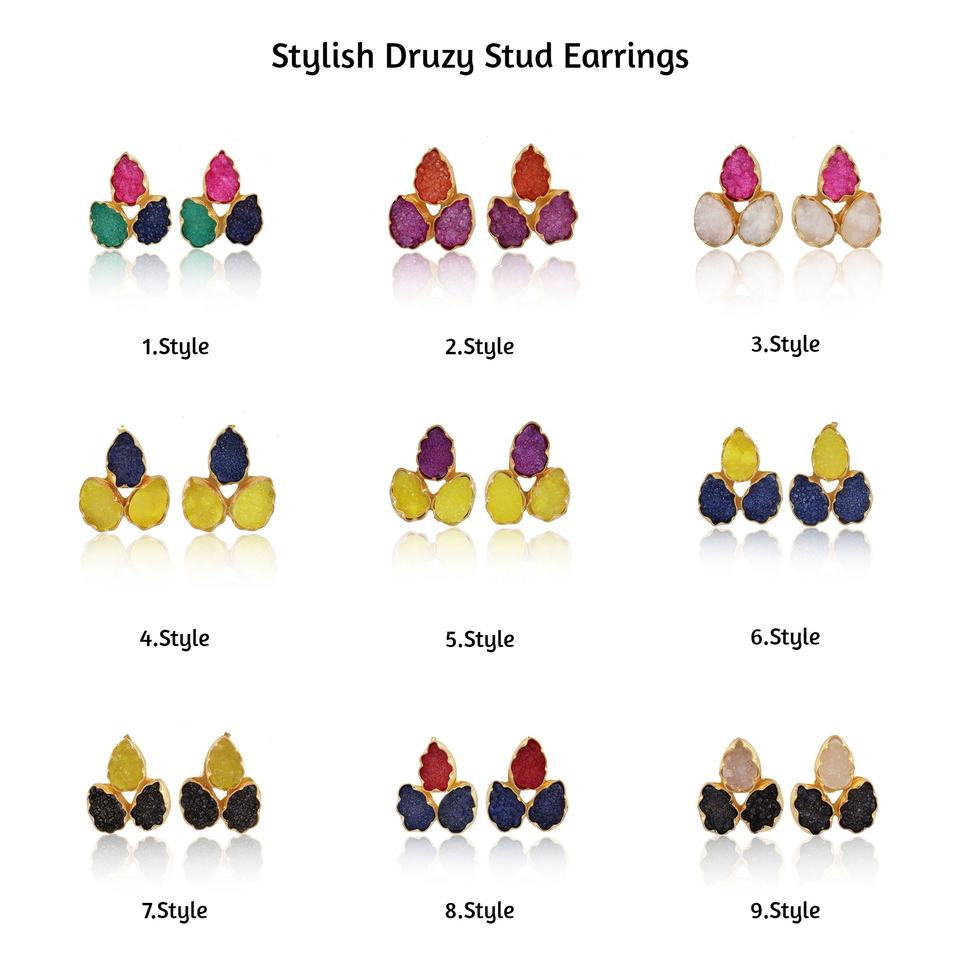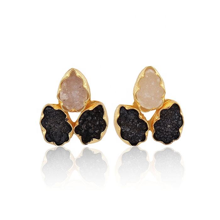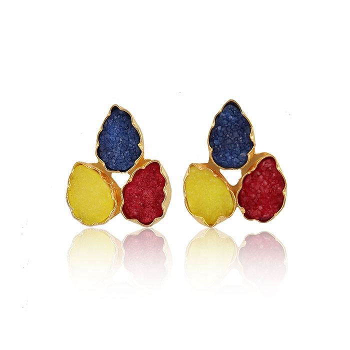 Boucles d'oreilles en forme de poire bleu et rouge druzy pierres précieuses agate naturelle druzy bijoux déclaration mode boucles d'oreilles bijoux cadeaux