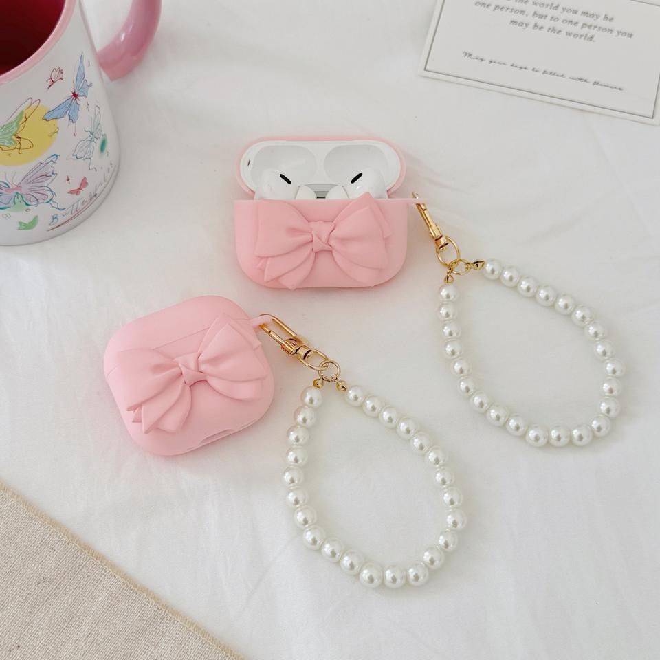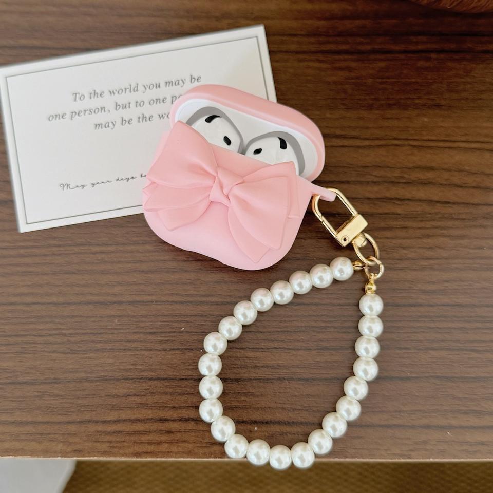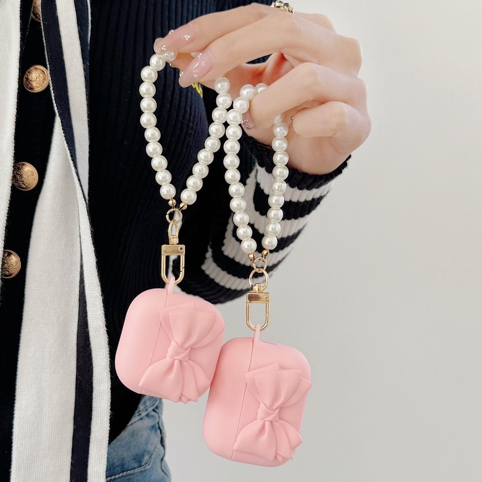 Étui de protection pour AirPods 4 avec chaîne de perles et nœud, compatible avec les écouteurs sans fil AirPods 2/Pro/Pro 2 de 3e génération