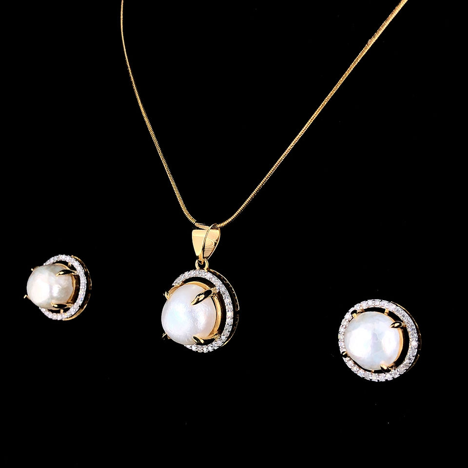 Numéro de Type:pearl Diamond Pendent with earring-1