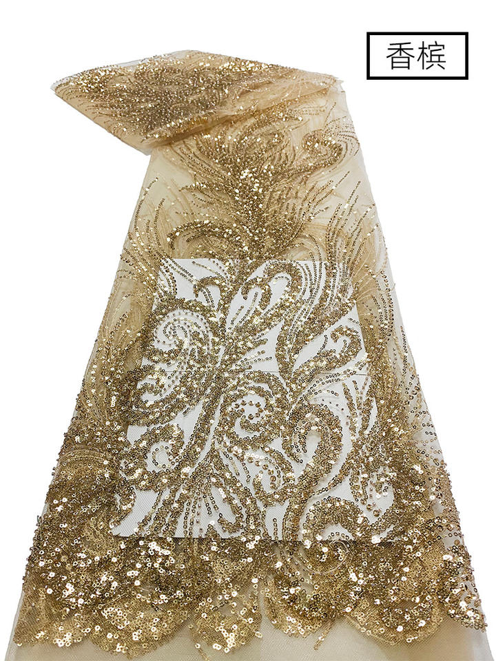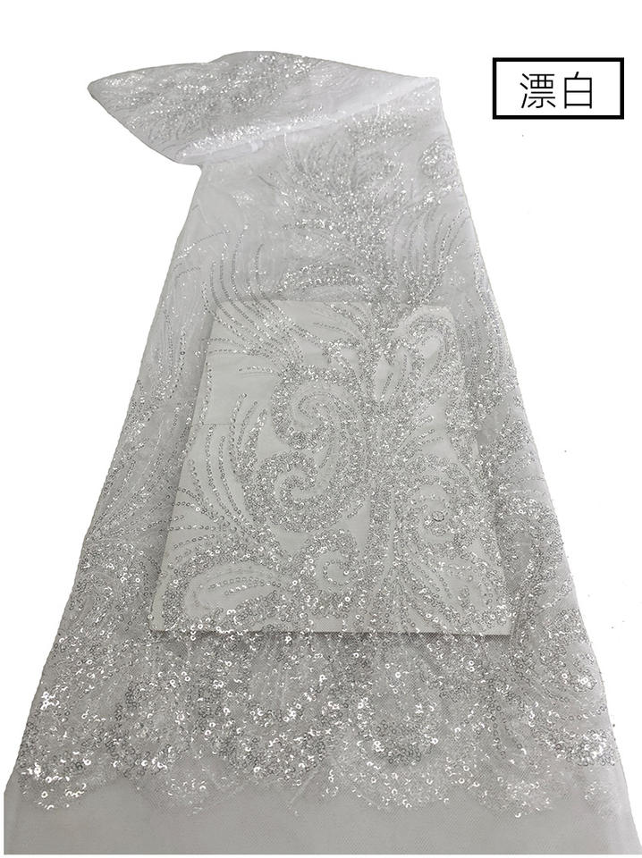 Perle Broderie Paillettes Maille Tissu Dentelle Robe De Mariée En Trois Dimensions Fleur Tissu a Paillettes Brode De Perles