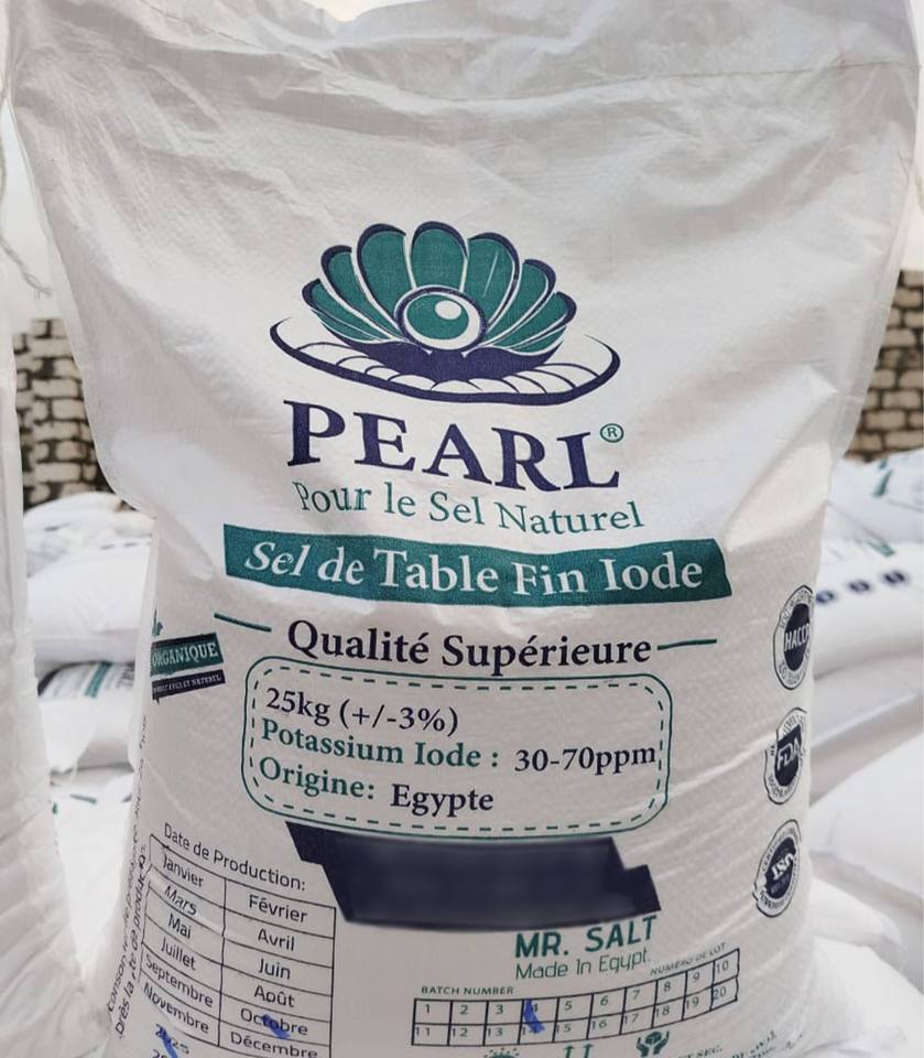 Sel de table fin perlé, sel marin solide raffiné comestible, 25 kg, pureté 99 %, avec additif d'iode, sac en vrac, emballage export