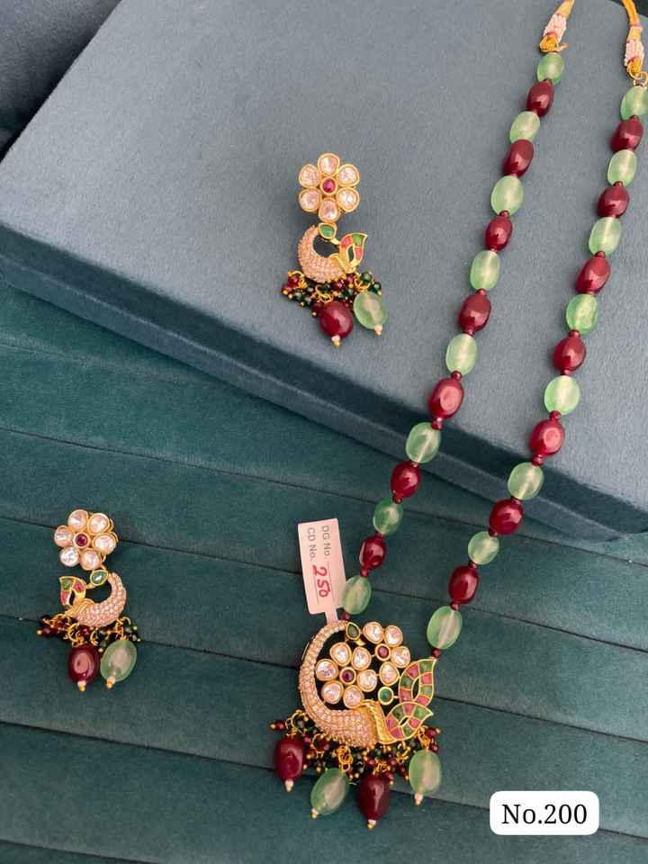 Ensemble de collier long en perles avec boucles d'oreilles, bijoux fantaisie pour mariage, produit artisanal en gros