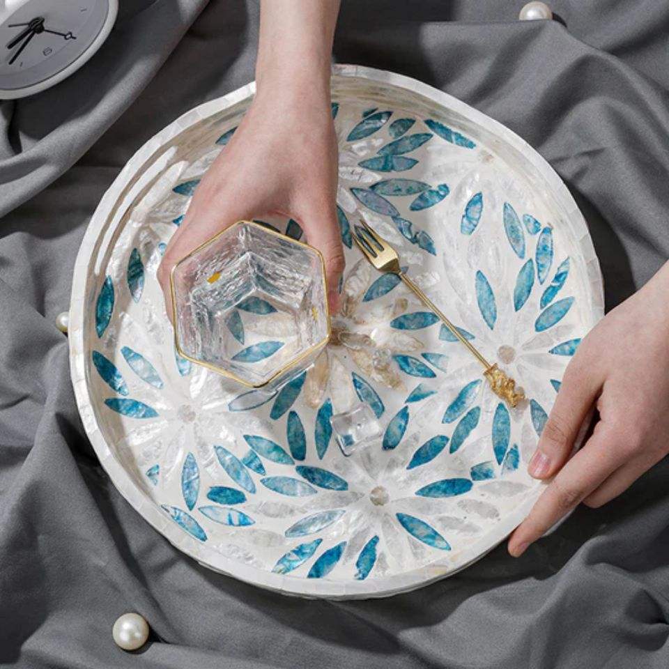 Plateau de service Pearl MOP avec finition lisse parfait pour servir des collations, des boissons et des desserts lors d'événements spéciaux
