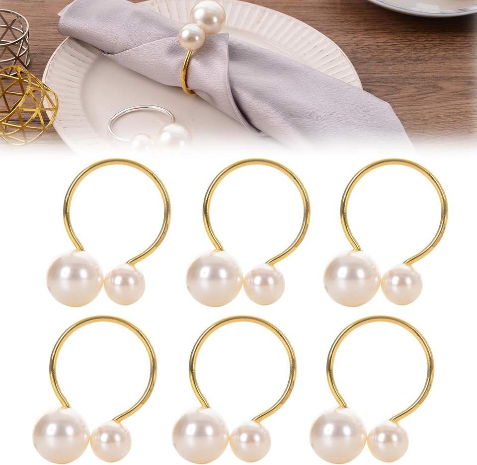Anneaux de serviette en perles Anneaux de serviette dorés avec des perles Anneaux de serviette en métal avec des perles Anneaux de serviette élégants Anneaux de serviette en perles dorées