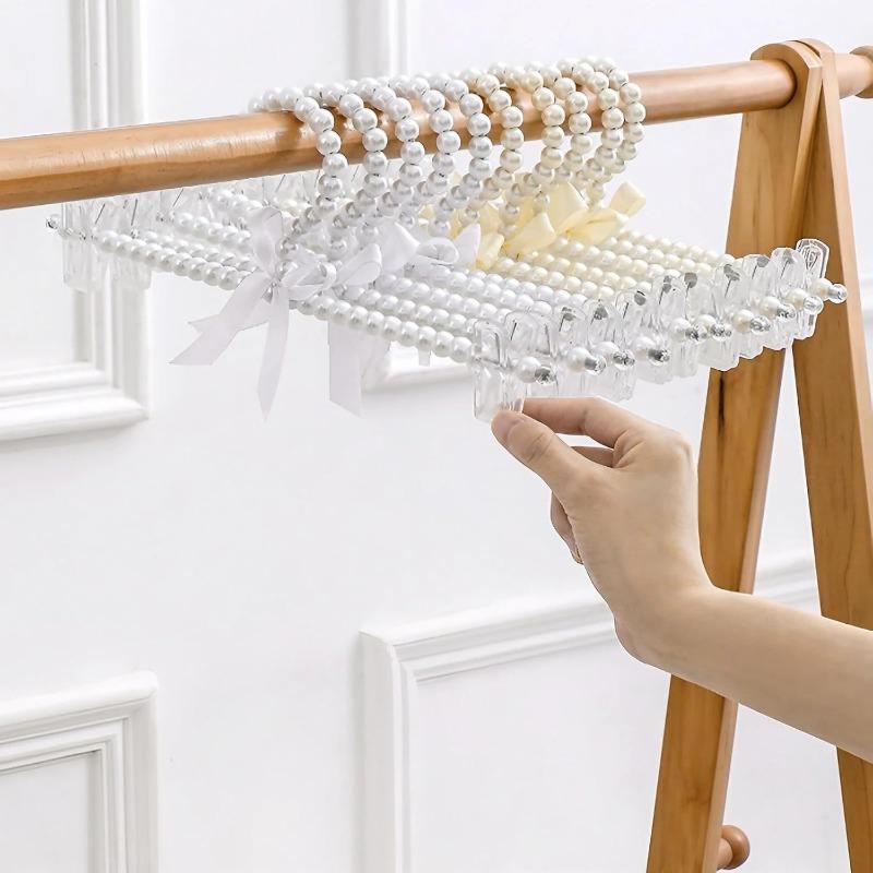 Cintres pour pantalons en perles Porte-vêtements en plastique avec nœud papillon avec organisateur à clips pour ranger les robes Chemises Pantalons Jupes dans le placard des chambres à coucher