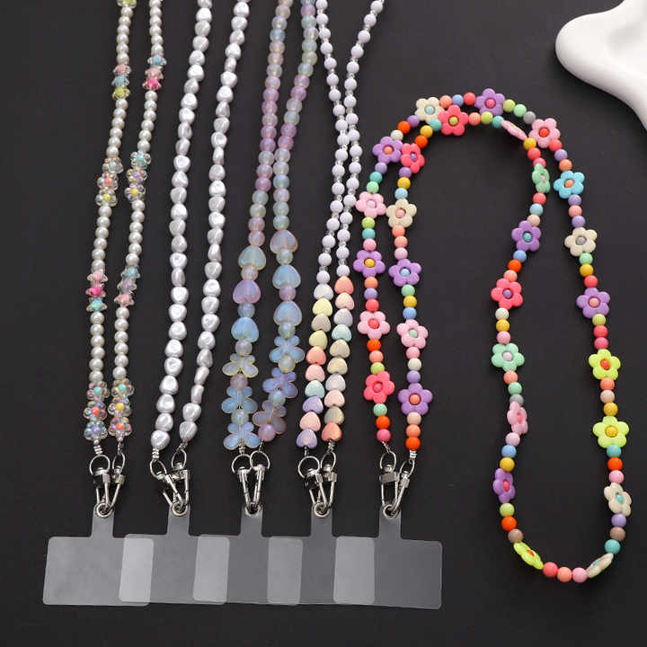 Pearl Phone Strap Universal Cell Phone Case Neck Shoulder Cord Beaded Crossbody Mobile Phone Lanyard for iPhone