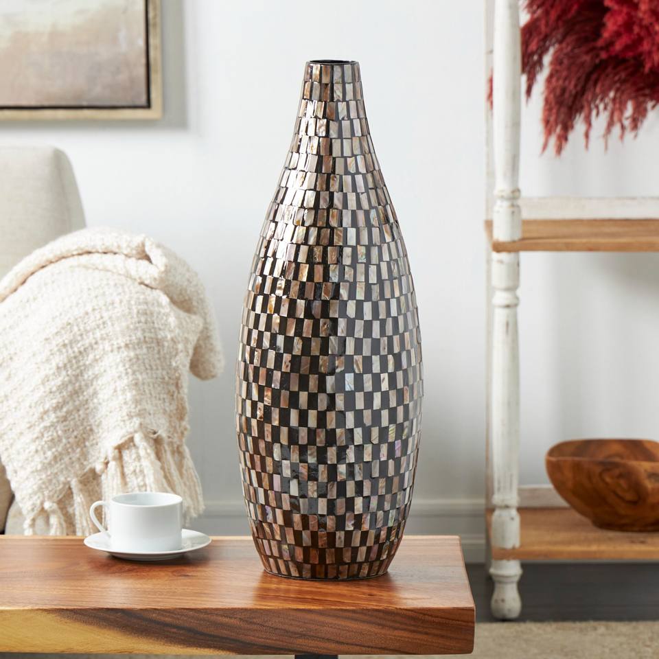 Pearlescent mother of pearl vase sea shells vases with mosaic pattern stylish nacre shell vase