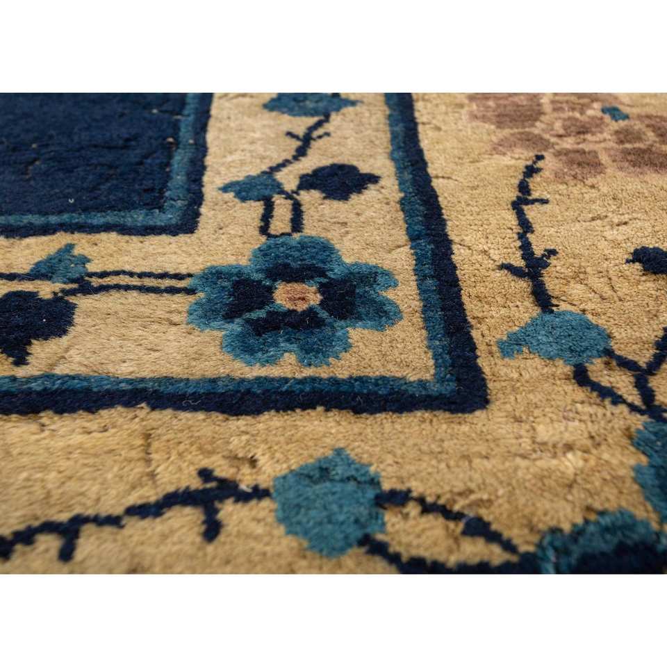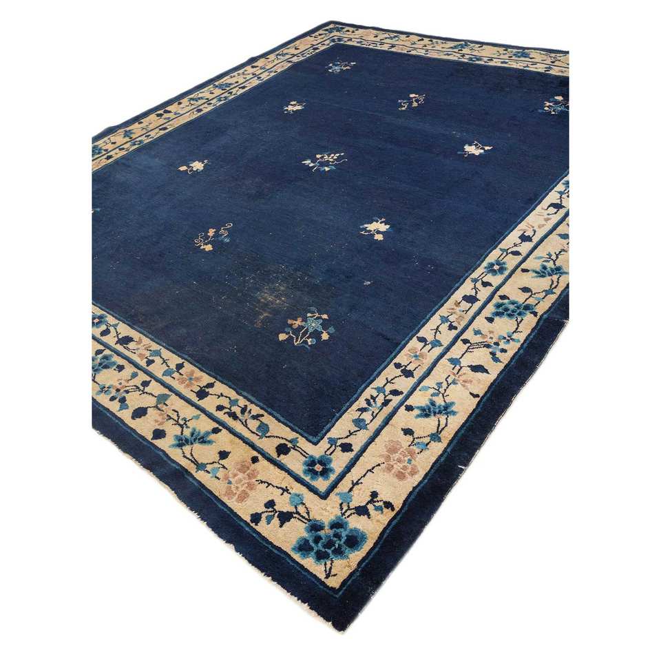 Tapis en laine noué à la main Pechino Blue, motif floral, pour salon, tapis rectangulaire pour couloir, entrée, Pae-5404