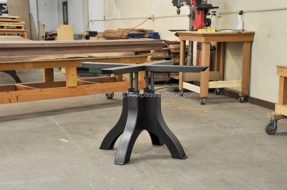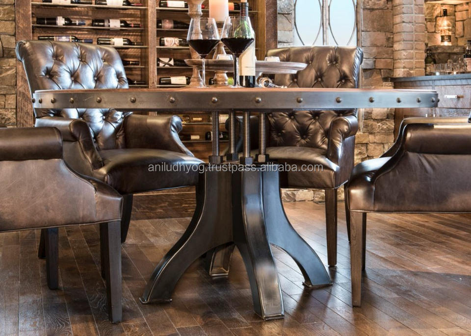 Table à manger ronde en kraft-noyer avec base en métal lourd/Table à manger ronde vintage industrielle