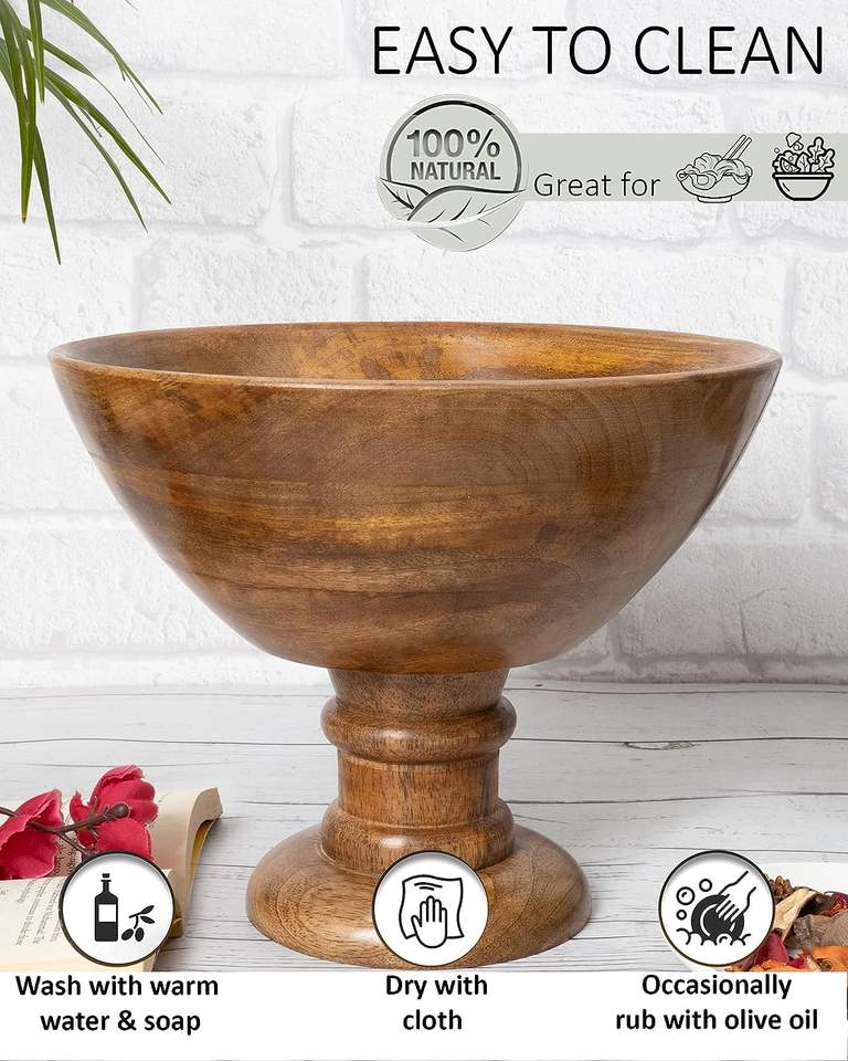 Pedestal Style Fruits Bowl Mango Wooden Customized Decorative Bowls Salad Candies Toffee Snacks Bowl For Tableware Home Decor