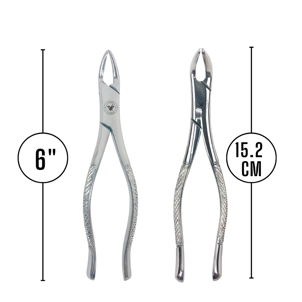 Spécifications produit:Pinces d'extraction dentaire, Modèle américain, Extraction des dents de la dentition primaire supérieure et inférieure, Acier inoxydable, Poignée texturée antidérapante