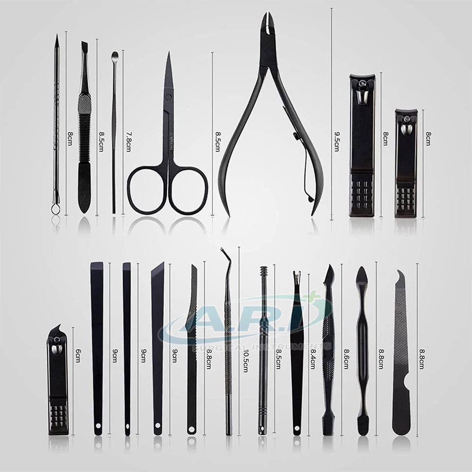 Kit de pédicure professionnel pour soins des ongles, comprenant coupe-ongles, limes, polissoirs, repousse-cuticules et outils de soin des pieds