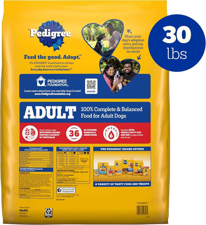 Pedigree Complete Nutrition Adult Dry Dog Food, Grilled Steak & Vegetable Flavor, 30 Lb. Bag