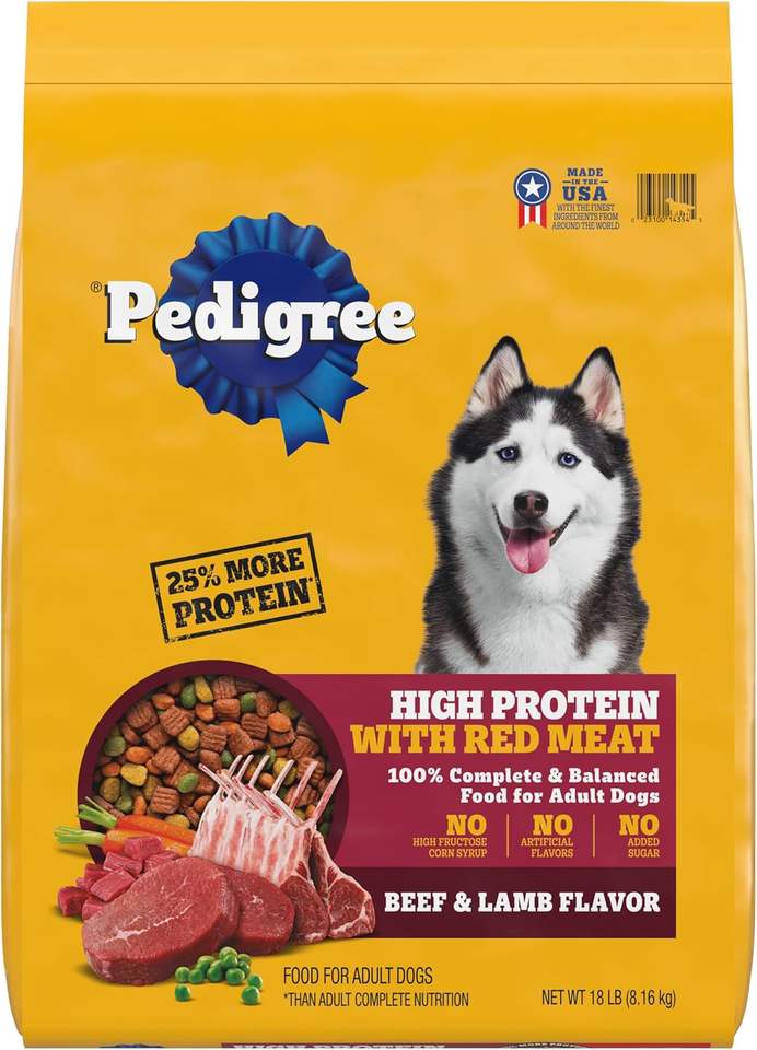 Pedigree High Protein Adult Dry Dog Food Beef and Lamb Flavor Dog Kibble, 18 Lb. Bag