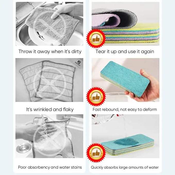Lingettes nettoyantes pelables, éponge à récurer arc-en-ciel réutilisable à double face, 12 couches