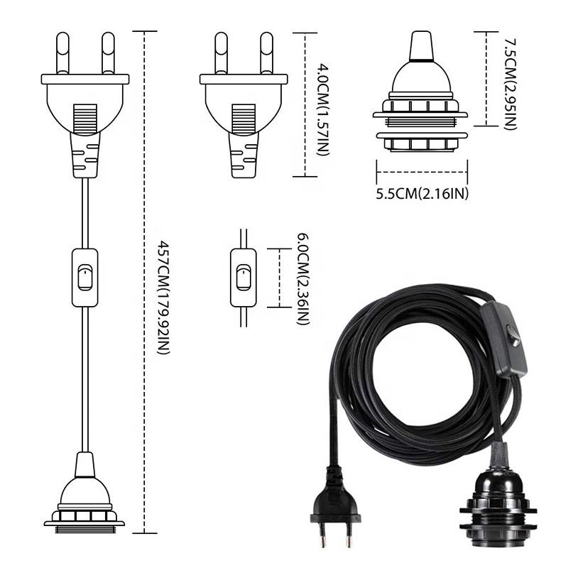 Lighting solutions service:ac 220v eu plug power cord textile e27