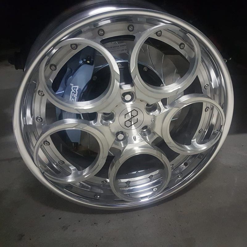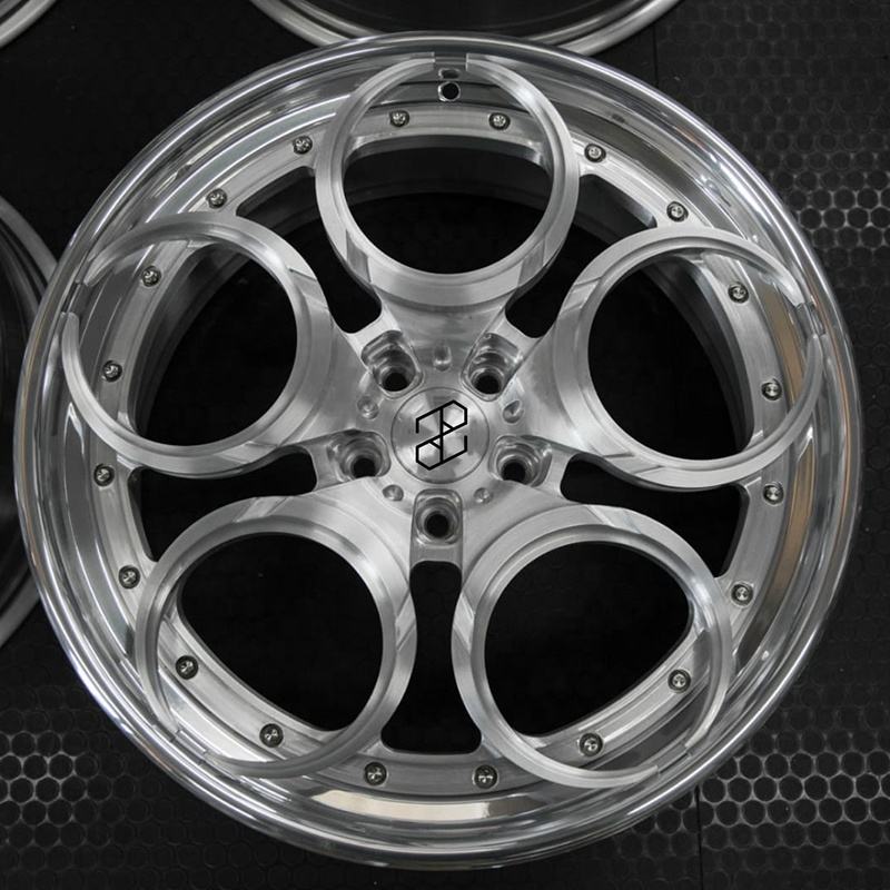 Jantes de course forgées en deux parties Pengzhen 18 pouces, finition brossée transparente, alliage léger 5x110 avec design à cinq branches pour Alfa Romeo