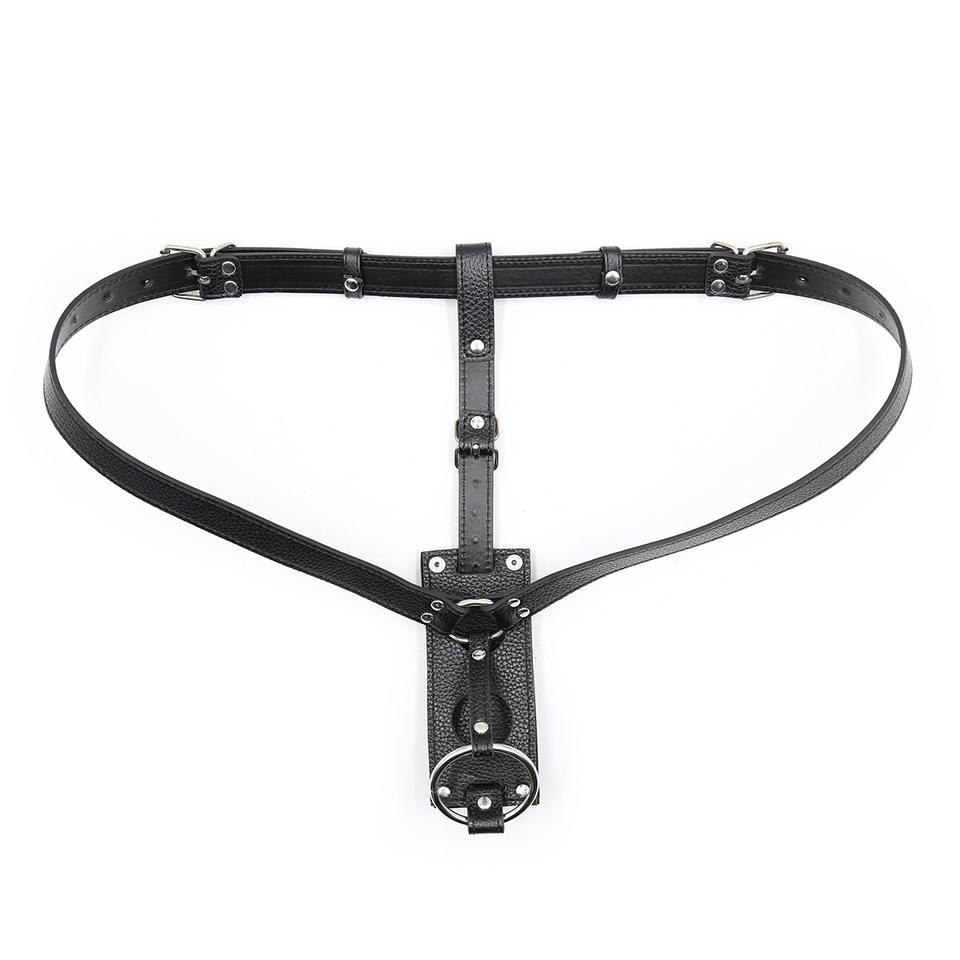 Anneau de pénis en cuir pour la fixation et la contrainte, avec tige vibrante pour pénis féminin, plug anal et stimulateur de la cavité postérieure