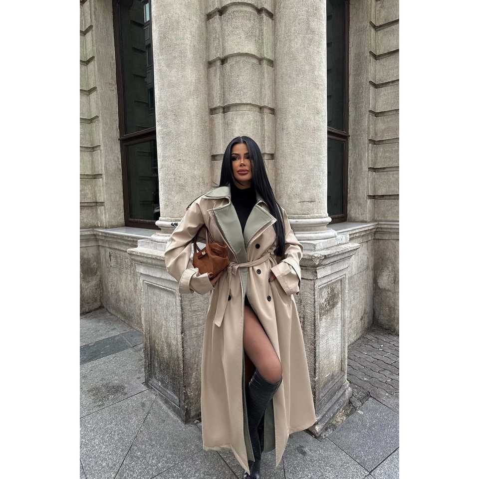 Manteau trench à col bicolore pour femme Penny Lane, tissu en laine, doublure en cachemire, décoration boutonnée, rembourrage en coton/laine, hiver automne