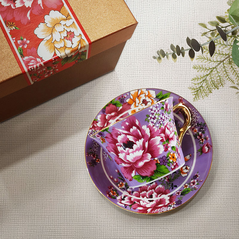Ensemble tasse à café et soucoupe en porcelaine motif pivoine, cadeau traditionnel de la culture hakka chinoise, adapté aux cadeaux d'affaires