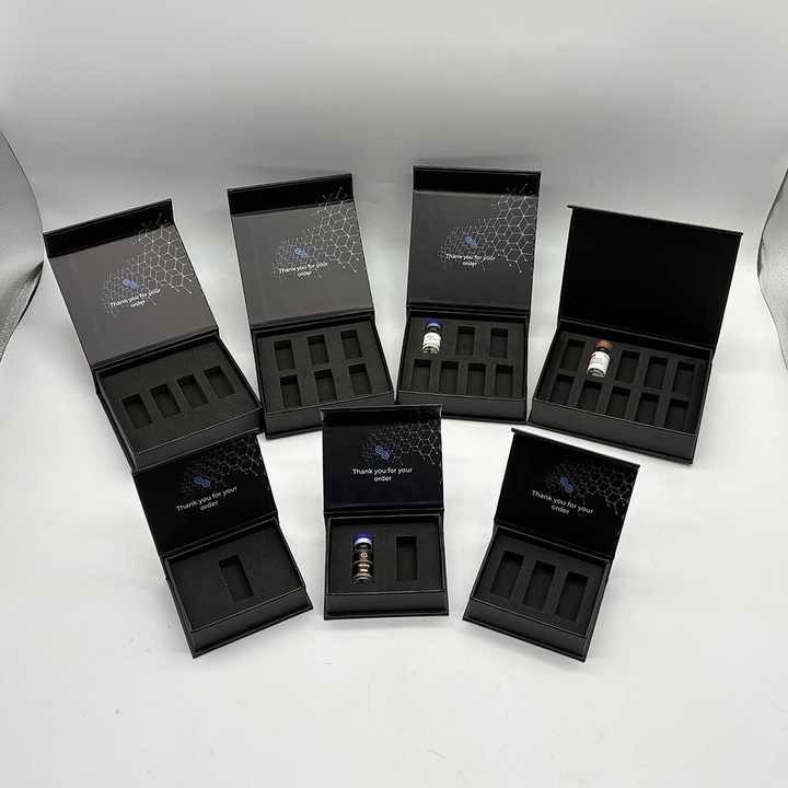 Boîte à peptides recyclable 2ml 3ml, emballage individuel pour flacons de peptides, boîte en carton noir magnétique avec divers compartiments pour flacons