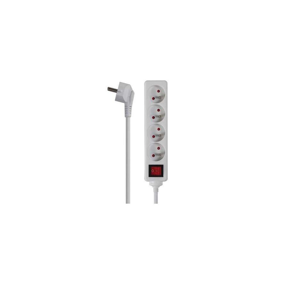 PRISE 4 VOIES Perel-PRISE AVEC INTERRUPTEUR-CÂBLE 1.5 m-BLANC-PRISE FRANÇAISE