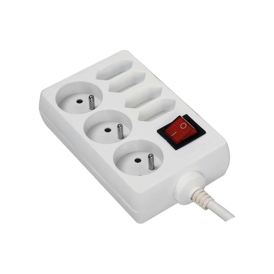 PRISE PEREL AVEC 3 x PRISES + 4 x PRISES EURO ET INTERRUPTEUR-CÂBLE 1.5 m-BLANC-PRISE FRANÇAISE