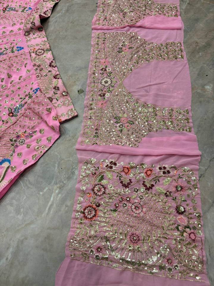 Tissu en soie géorgette synthétique doux de qualité supérieure 2026, broderie lourde, 4 mètres, design élégant et tendance, collection de cholis de SIE